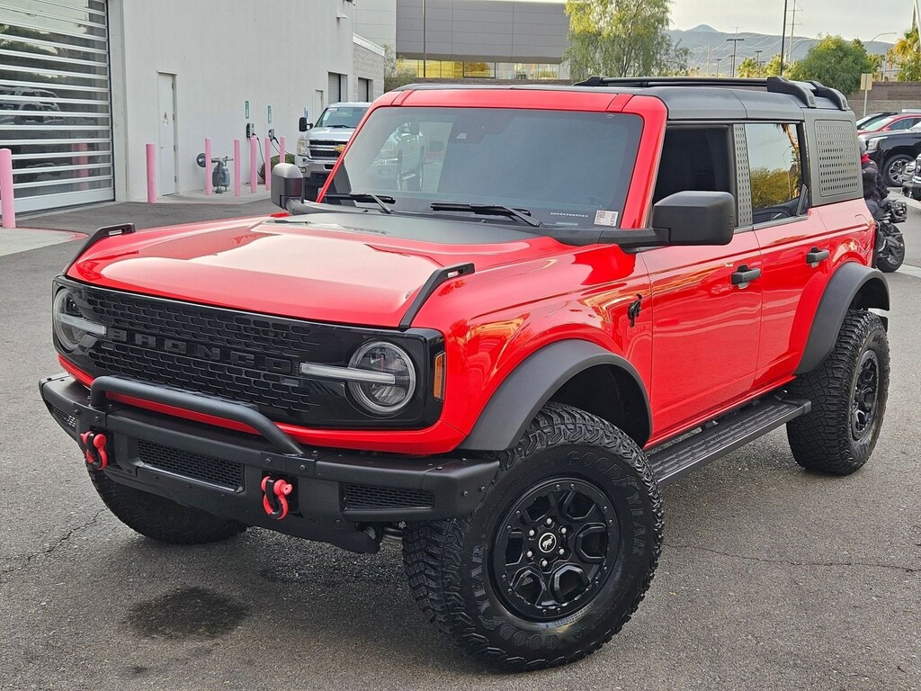AutoNation USA Henderson has a wide selection of exceptional pre-owned vehicles to choose from, including this 2022 Ford Bronco. This Ford includes: MEDIUM SANDSTONE W/BLACK, HEATED CLOTH BUCKET SEATS Cloth Seats Heated Front Seat(s) Bucket Seats ENGINE: 2.7L ECOBOOST V6 4-Wheel Disc Brakes Traction Control V6 Cylinder Engine ABS Gasoline Fuel Turbocharged Stability Control FORD PERFORMANCE HEAVY-DUTY MODULAR FRONT BUMPER EQUIPMENT GROUP 352A MID PACKAGE POWDER COATED TUBE STEP Running Boards/Side Steps TRANSMISSION: 10-SPEED AUTOMATIC Transmission w/Dual Shift Mode A/T 10-Speed A/T RACE RED CARBONIZED GRAY MOLDED-IN-COLOR HARD TOP Targa Roof Rear Defrost Convertible Hardtop Generic Sun/Moonroof Dual Moonroof *Note - For third party subscriptions or services, please contact the dealer for more information.* This Ford Bronco Wildtrak defines excellence in an SUV. It has the convenience of limitless boundaries paired with city sophistication. Pull up in the vehicle and the valet will want to parked on the front row. This Ford Bronco Wildtrak is the vehicle others dream to own. Don't miss your chance to make it your new ride. Simply put, this Four Wheel Drive is engineered with higher standards. Enjoy improved traction and safety while driving this 4WD Ford Bronco Wildtrak. Exceptional in every sense of the word, this incredibly low mileage vehicle is one of a kind.