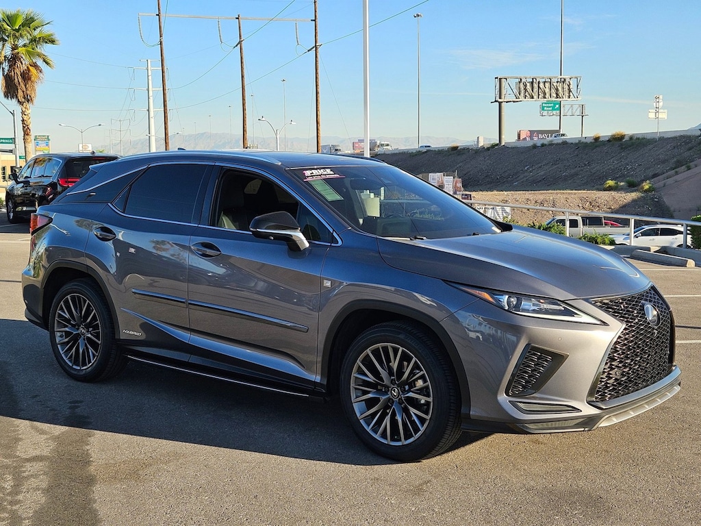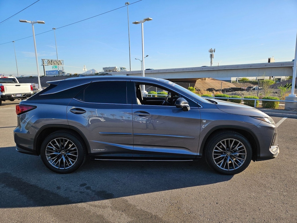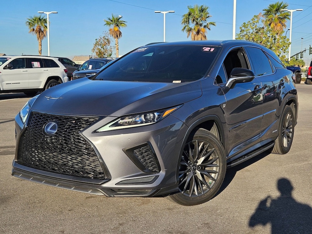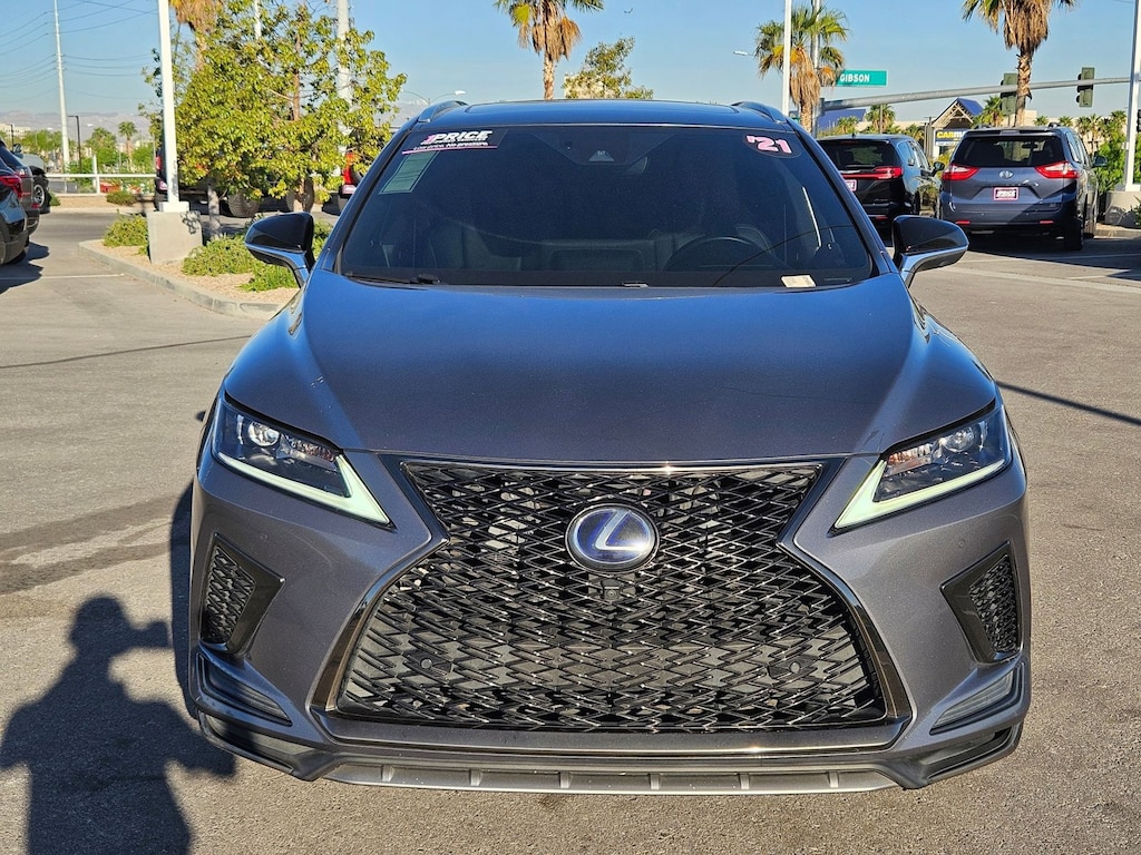 Check out this pre-owned 2021 Lexus RX we recently got in. This Lexus includes: BLACK, F SPORT NULUXE SEAT TRIM Premium Synthetic Seats F SPORT PERFORMANCE PACKAGE Transmission w/Dual Shift Mode Heated Steering Wheel NEBULA GRAY PEARL ALL-WEATHER FLOOR MATS W/CARGO TRAY (PPO) *PRICE TO FOLLOW* TOUCH-FREE POWER REAR DOOR W/KICK SENSOR Hands-Free Liftgate Power Liftgate Remote Trunk Release RUNNING BOARDS (PPO) *PRICE TO FOLLOW* Running Boards/Side Steps PANORAMIC VIEW MONITOR W/RR CROSS-TRAFFIC BRAKING Rear Parking Aid Back-Up Camera Blind Spot Monitor Power Folding Mirrors BODY SIDE MOLDINGS (PPO) *PRICE TO FOLLOW* TILT & SLIDE MOONROOF Generic Sun/Moonroof Sun/Moonroof CARPET CARGO MAT (PPO) *PRICE TO FOLLOW* 12.3 NAVIGATION SYSTEM W/MARK LEVINSON AUDIO Navigation System Premium Sound System *Note - For third party subscriptions or services, please contact the dealer for more information.* This SUV is a superb example of what a tough, work focused vehicle should be. Exceptional towing, acceleration and torque will help you get the job done. Is it possible to fall in love with a vehicle? It is when your vehicle is as prestige as the Lexus RX. All-wheel drive means peace of mind all the time. This Nebula Gray Pearl AWD Lexus enjoys a host offeatures, including exceptional acceleration and superior stability so you can drive with confidence. It's not a misprint. And the odometer isn't broken. This is a very low mileage Lexus RX. A rare find these days. You'll quickly realize how much you will need a navigation system once you are stopping for directions or looking up addresses on your phone instead of looking at the road. This Lexus RX RX 450h F SPORT Handling features a navigation system that will free you of these unnecessary headaches.
